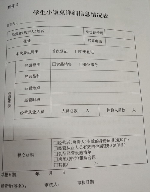 第十五条 旗县级食品药品监督管理部门应当为准予备案的学生小饭桌填写《学生小饭桌详细信息情况表》(见附件2),发放学生小饭桌备案卡(见附件3),并以适当方式予以公示,主动接受社会监督,便于公众查询。